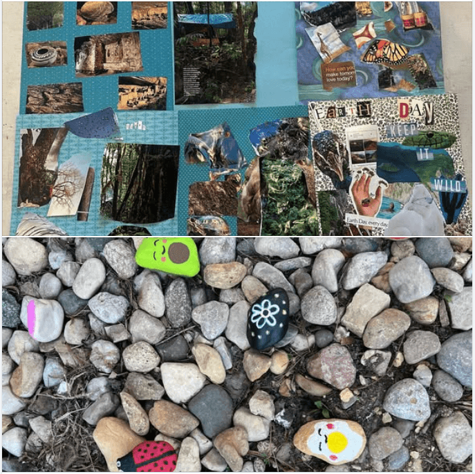 We made photo collages and painted stones.